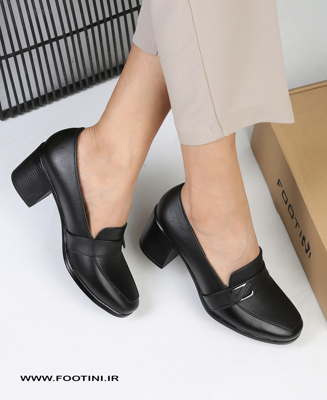 کفش زنانه پاشنهدار مدل Z با رویه چرم مصنوعی و یراق تزیینی