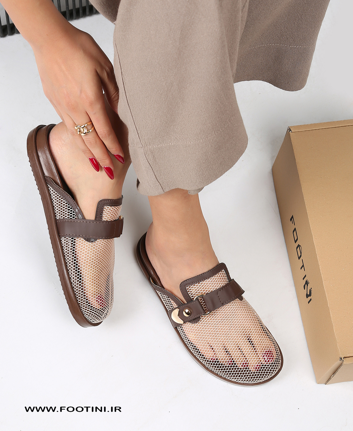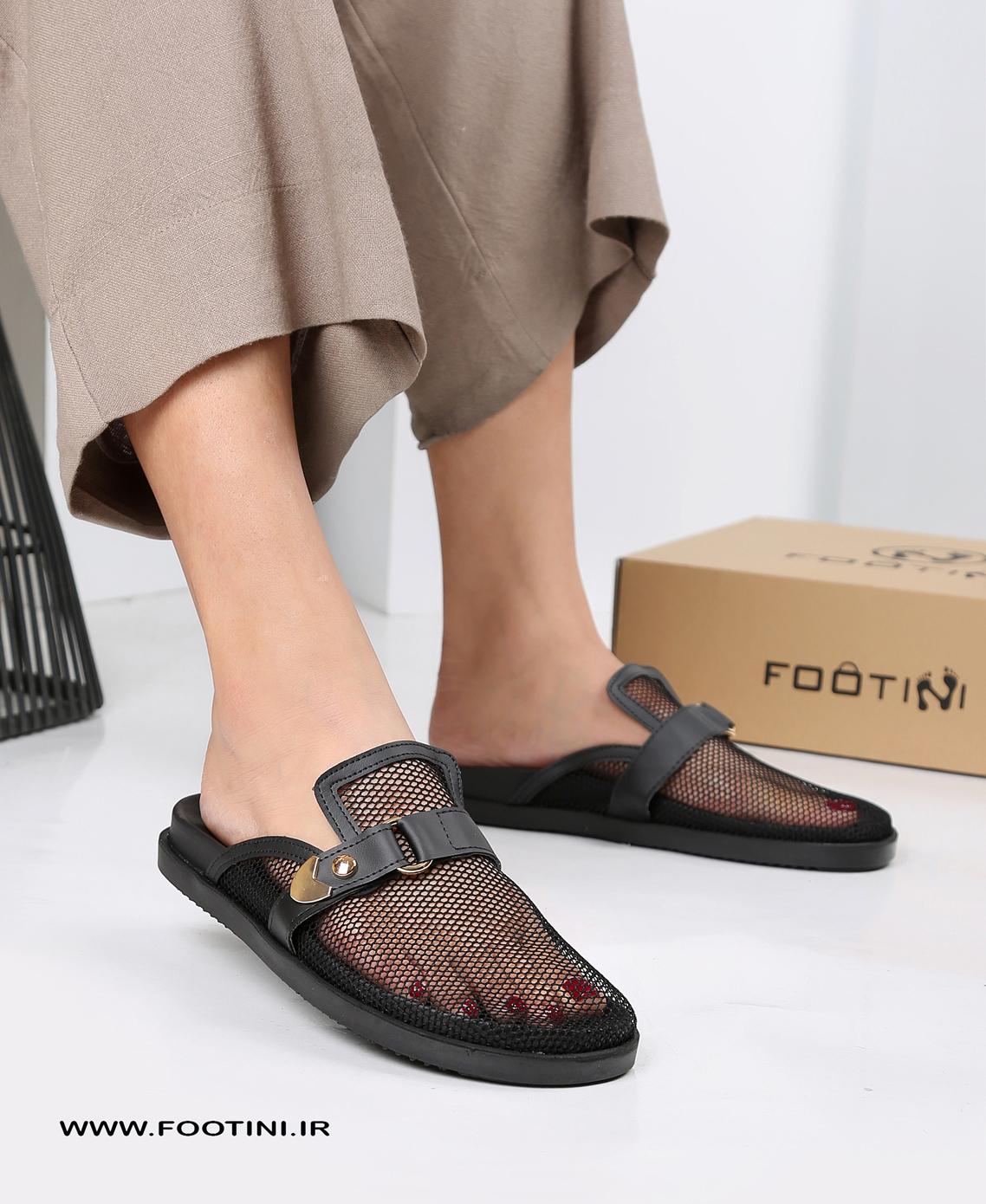 طراحی شده از جنس توری مشبک (مش)، که علاوه بر زیبایی خاص، باعث جریان هوا و تنفس بهتر پا می‌شود.