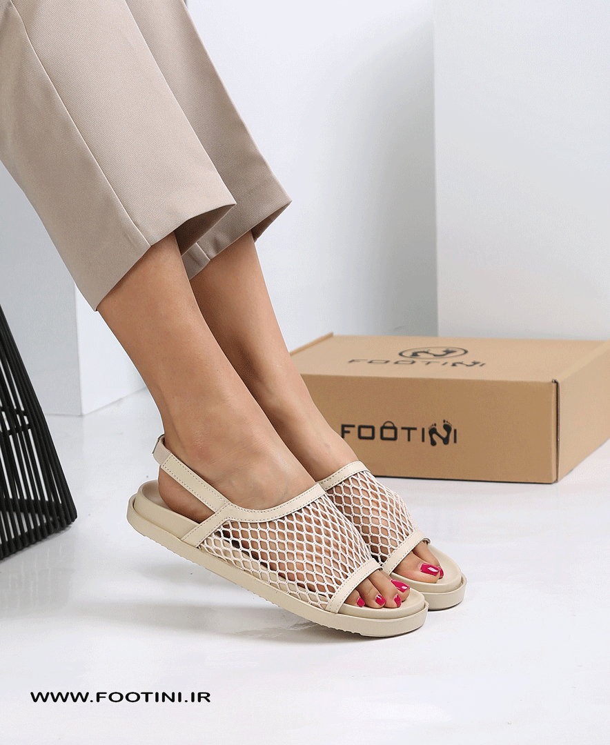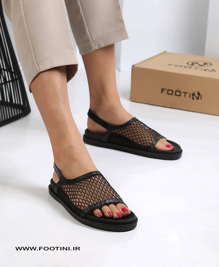 صندل زنانه رکابدار با طراحی توری و جلو باز :