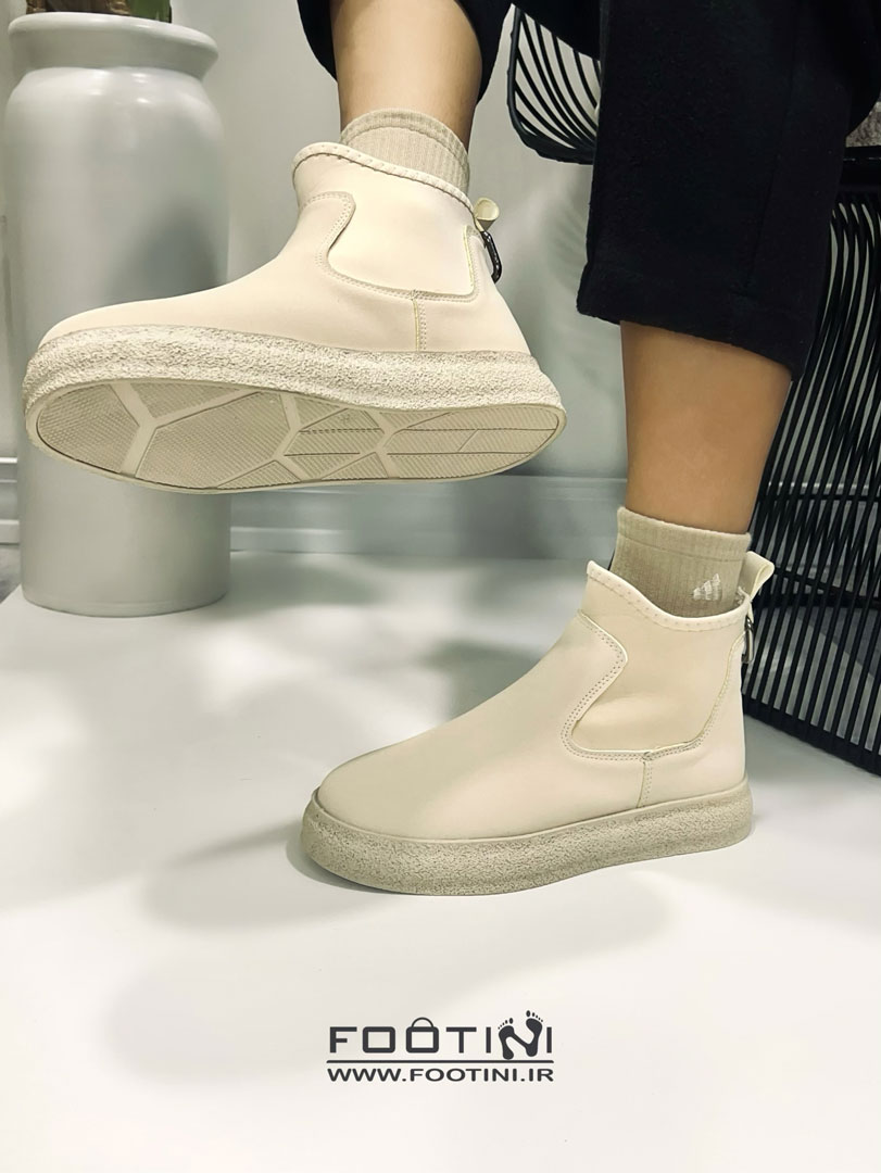 راحتی در پوشیدن: طراحی بدون بند با استفاده از استرج و کش دور مچ به شما کمک میکند که به راحتی نیم بوت را به پا کنید و آن را از پا درآورید.