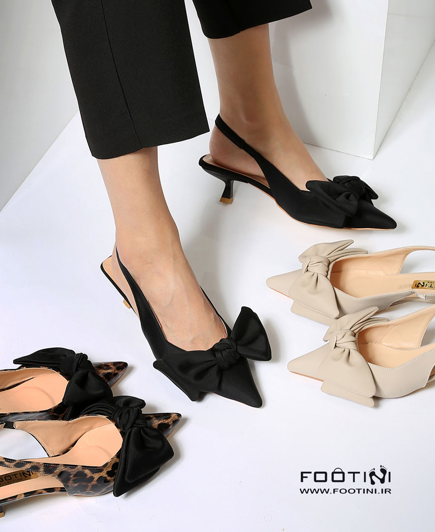 کفش مجلسی پاشنه ۵ سانت با طراحی پاپیونی، گزینه‌ای فوق‌العاده برای مجالس و میهمانی‌هاست.