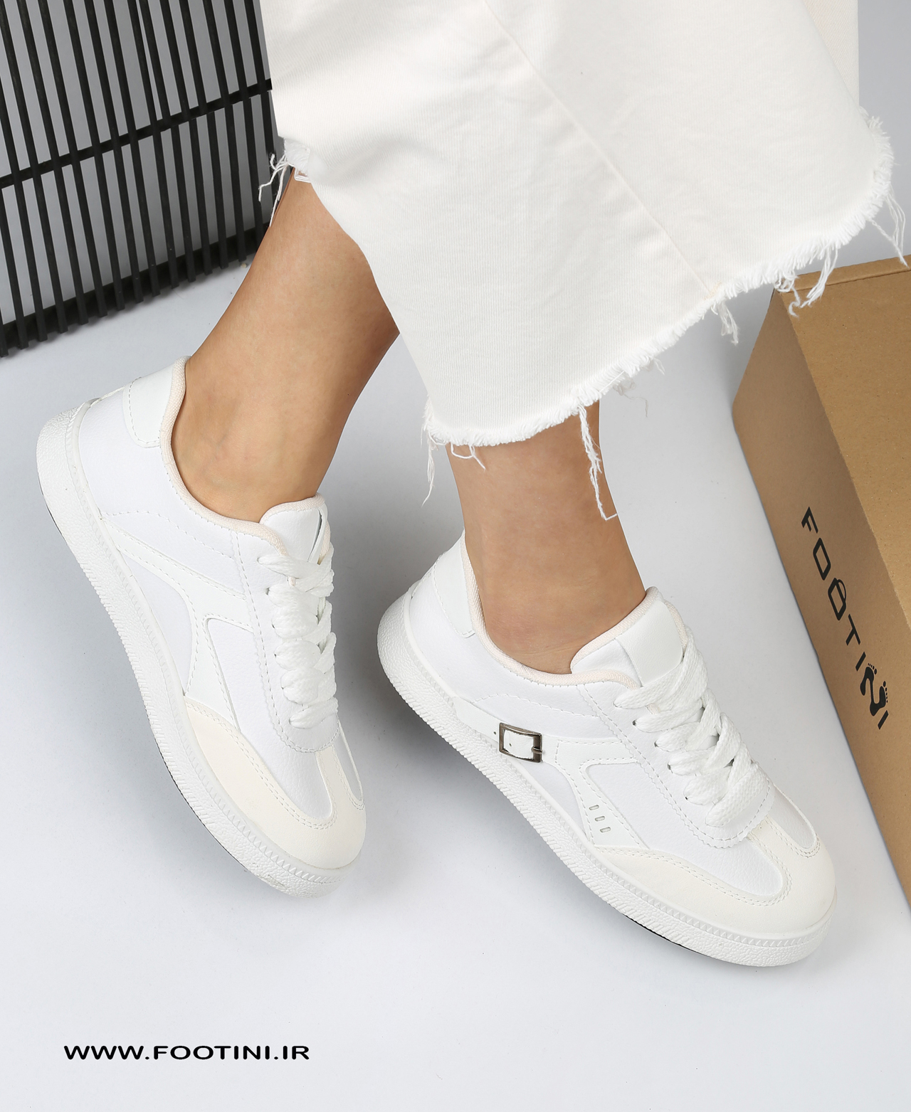 کفش کتونی زنانه شیک لژدار با رویه چرم مصنوعی و سگک فانتزی