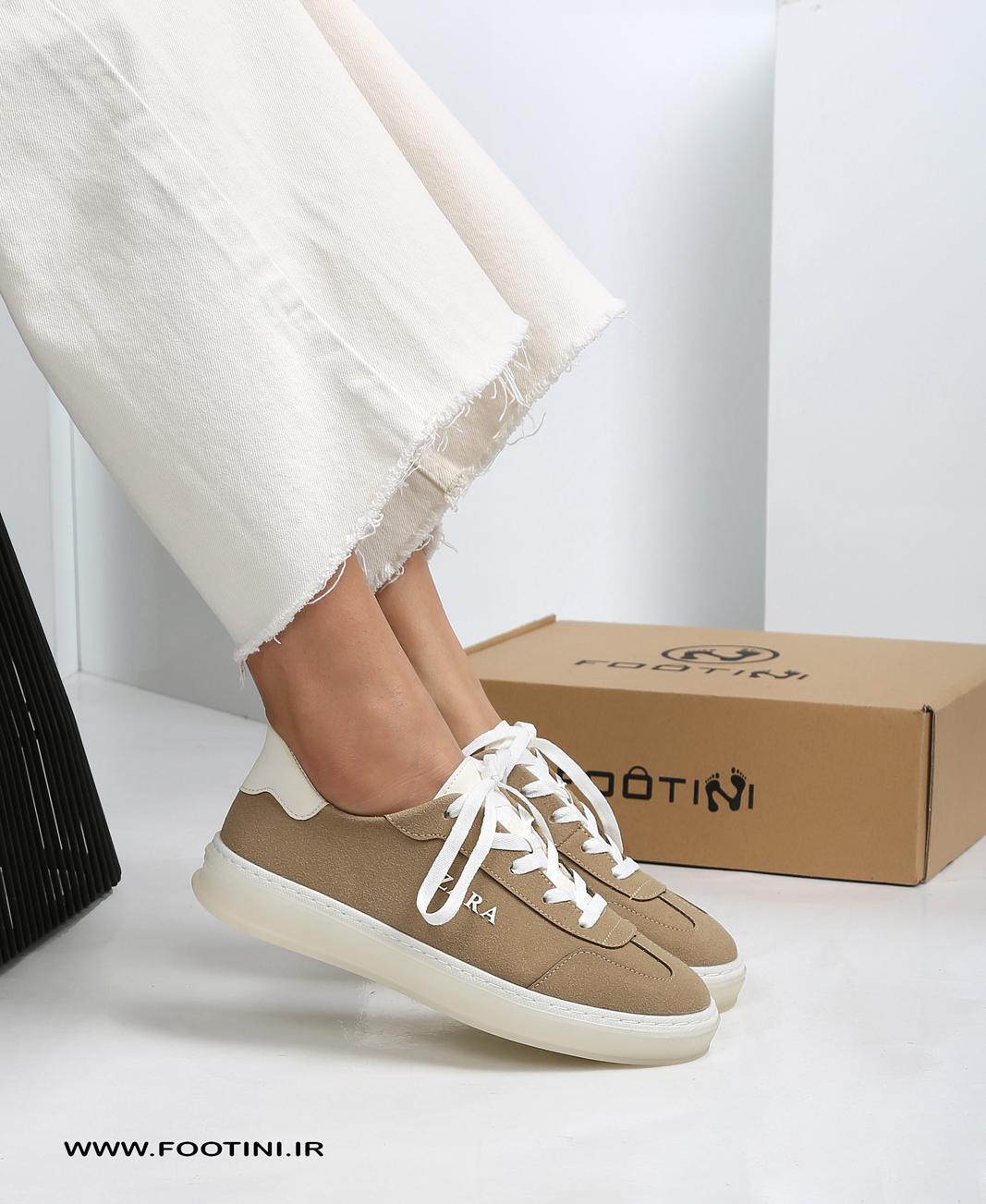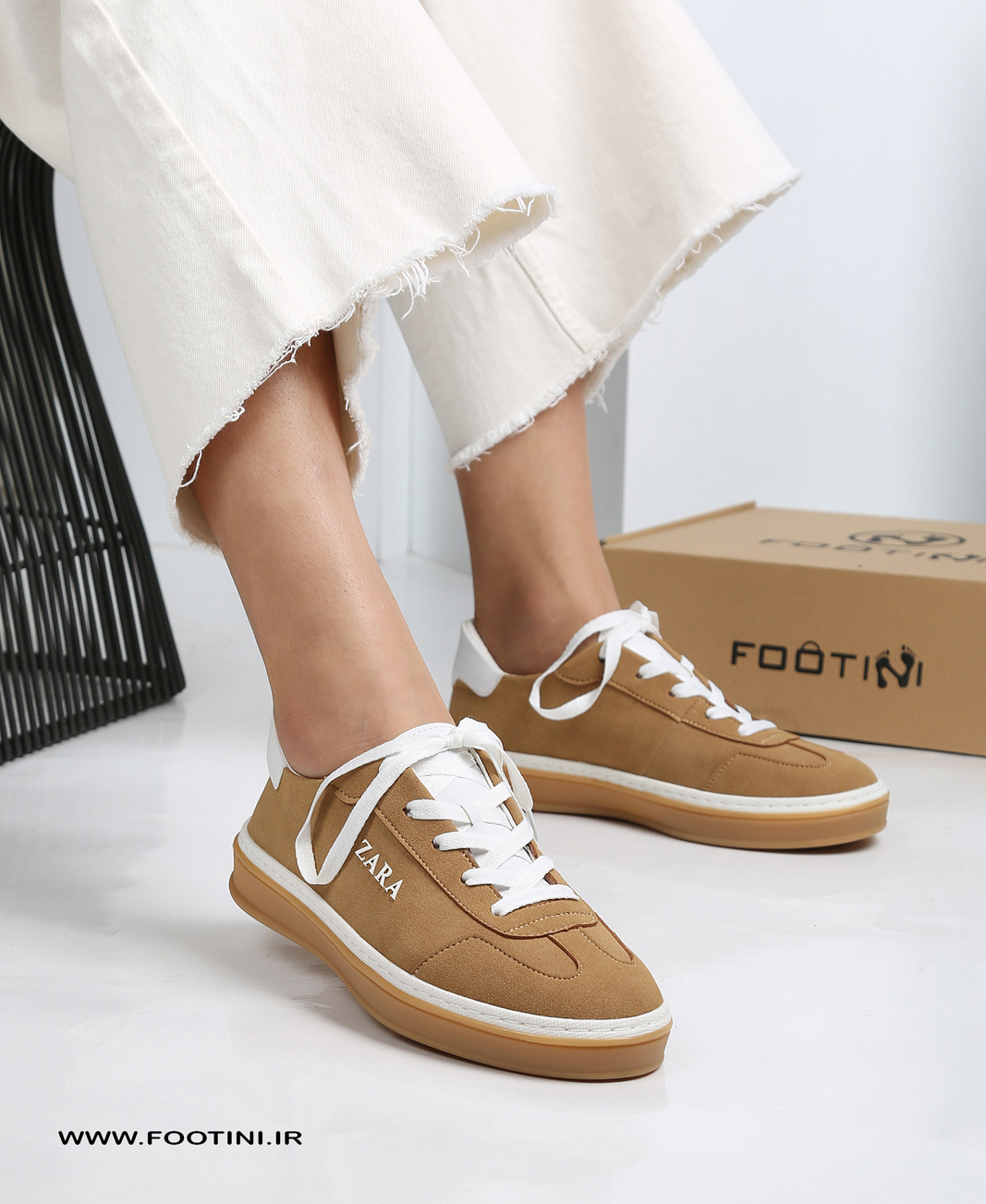 برند: حک لوگوی رسمی برند زارا در کنار کفش، نشانهای از اصالت و شیکپوشی.