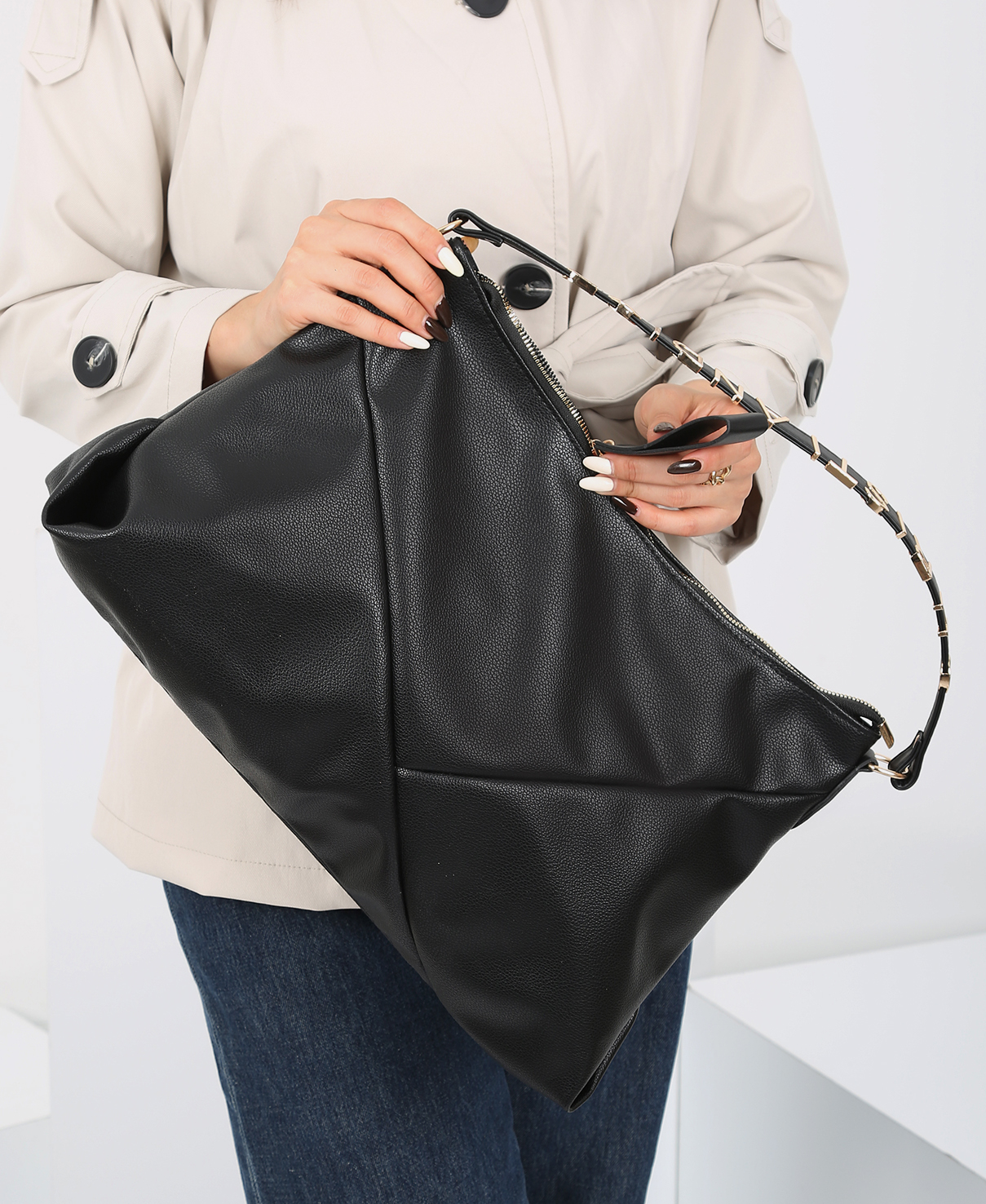 دسته کوتاه: دسته‌ای خوش‌ساخت و محکم که به زیبایی به زیپ اصلی کیف متصل شده است.